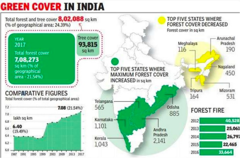 India targets bringing 33 percent of its geographical area under forest cover. As many as 15 states and union territories (UTs) have forest cover exceeding 33 percent of their geographical area. Out of these, seven states have more than 75 percent forest cover while eight states have forest cover between 33 percent and 75 percent.